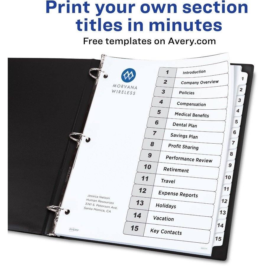 Avery® 15-tab Custom Table of Contents Dividers