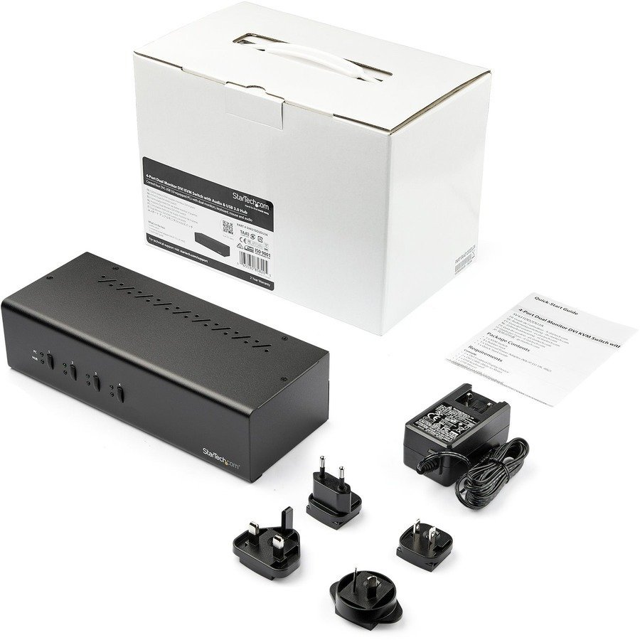 StarTech.com 4 Port Dual Monitor Dual Link DVI KVM Switch 1440p Dual Screen/View/ Display Compact USB KVM Switch w/USB 3.0 Hub & Audio TAA