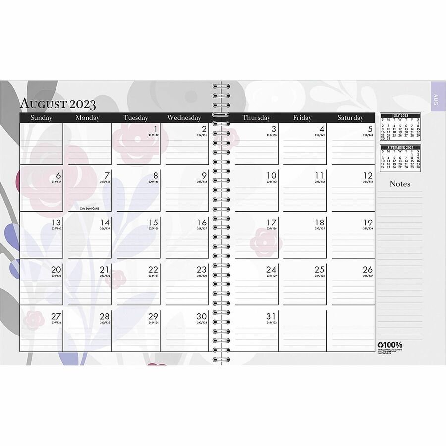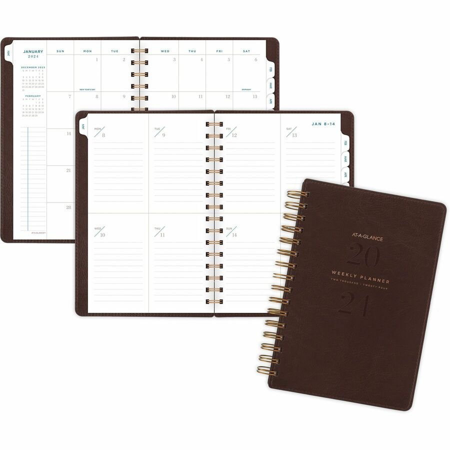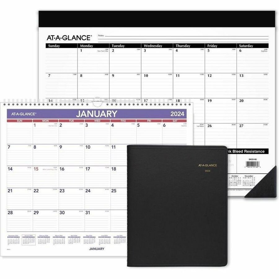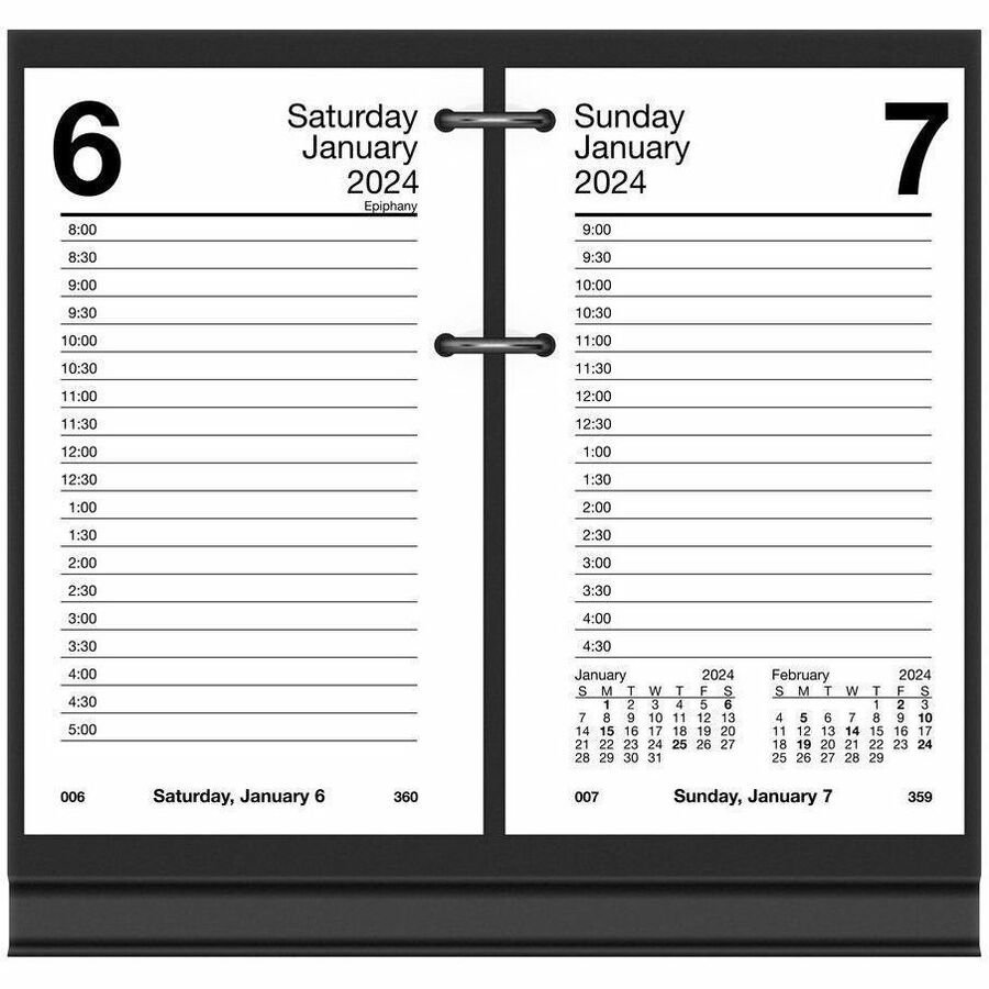 Standard Size – Julian Dates – Daily – 12 Month – January 2024 – December 2024 – 7:00 AM to 5:00 PM – Half-hourly – 1 Day Double Page Layout – 3 1/2″ x 6″ White Sheet – 2-ring – White, Black – Paper – Ruled, Planning Space, Reference Calendar, Year Date Indicator – 1 Pack