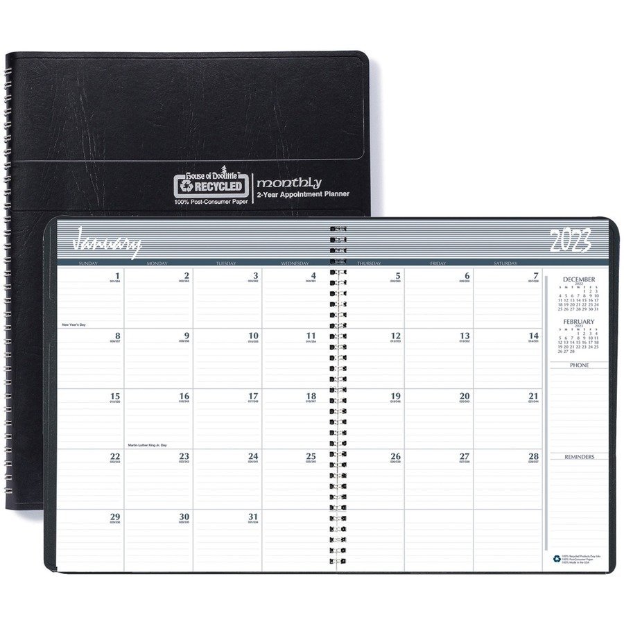 • Monthly reference on each spread for easy date-checking