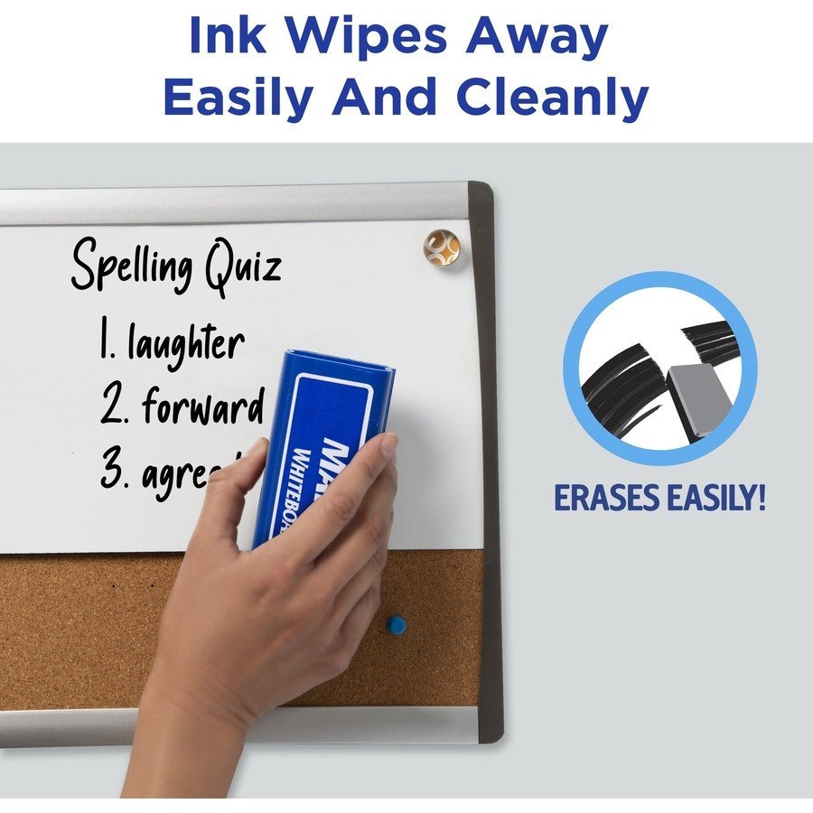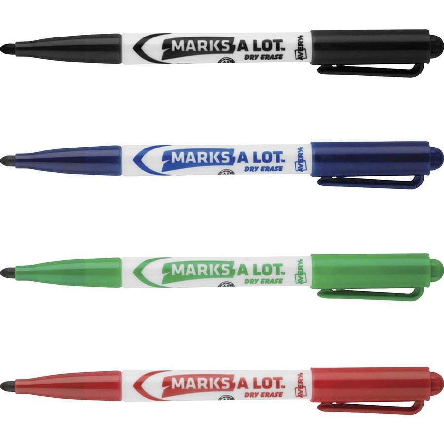 Marketing Information:Bold, erasable ink of these Marks A Lot Dry Erase Markers provides high visibility even from a distance. They write smoothly on whiteboards, glass and other nonporous surfaces. Ink wipes off easily with a dry cloth or eraser. The cap can be left off for up to 24 hours without the ink drying out. Bullet tip is great for creating clean lines in tight spaces. Nontoxic, low-odor ink makes them great for school, office and home,