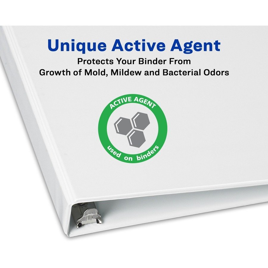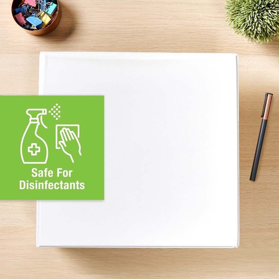 Marketing Information:View binder features antimicrobial material that inhibits the growth of bacteria, mold and fungus. Slant-D rings have a higher page capacity compared to same-size round rings. Back-mounted metal rings let your letter-size pages lie flat. 3″ ring capacity accommodates approximately 600 pages. Customize the overlays on the front, spine and back with free templates available online. Nonstick polypropylene material prevents toner transfer. Four interior pockets offer plenty of storage. Each pocket holds up to 20 sheets. Binder also offers concealed rivets for a professional appearance and a sturdy chipboard core.