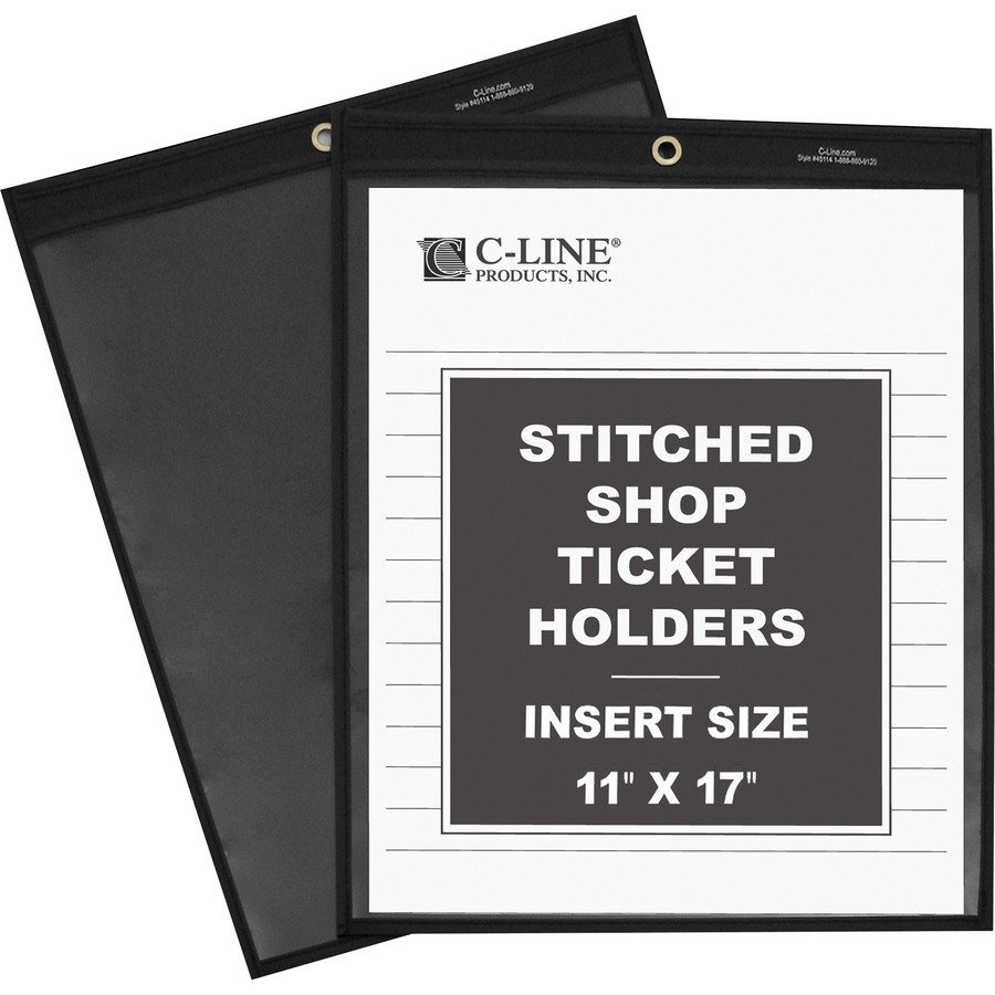 Stitched Shop Ticket Holders are made of heavy-duty clear vinyl pockets with stitched, reinforced neon color edging to make special jobs stand out. Design makes contents easy to identify with clear sides and metal eyelet at top for hanging. Insert size is 9″ x 12″. Stitched seams ensure long-lasting utility. Color-coded edging is ideal for organizing work by department, day of week or importance.