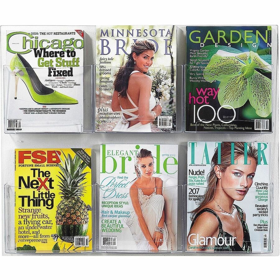 Compact, desktop literature holder features a four-pocket design so you can display a variety of leaflets on an incline and keep your literature in full view. Perfect for use in lobbies, restaurants, libraries and more. Each pocket displays literature in stacks up to 1-1/2″ thick. Literature holder is made of crystal-clear plastic. Rounded edges offer smooth appearance. Use as a stand-alone display on your countertop or mount on a wall using the built-in holes.