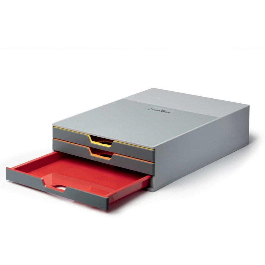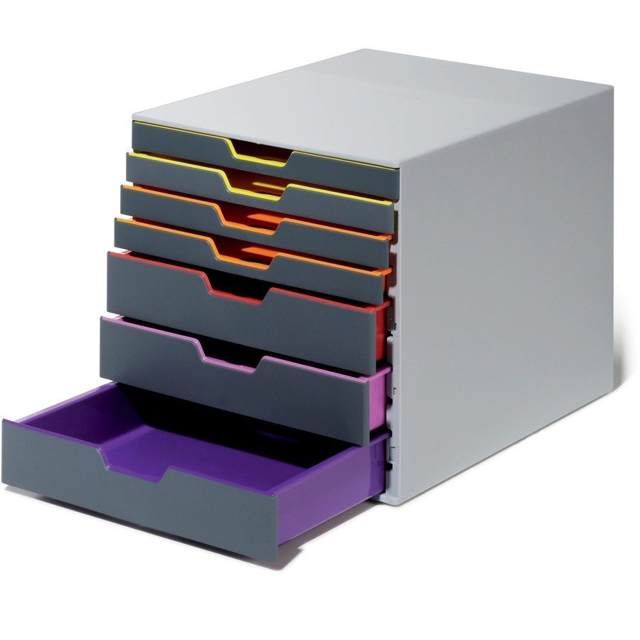 Marketing Information:Drawer Box features a stylish design with sleek contours for an attractive addition to any desk. Each drawer is colored in a different color to aid document organization. Skid-proof, plastic feet prevent sliding on smooth surfaces. The top, lockable drawer allows you to safely store your confidential documents and personal belongings. Its compact size allows it to fit into all standard office cabinets and sideboards. Drawers with drawer stops operate smoothly and silently for easy access to your belongings. Stackable construction allows you to place additional drawer boxes on top for space-saving, desktop organization. Letter-size organizer is perfect for storing office papers, various office supplies, business cards, craft supplies, school supplies, jewelry and more.
