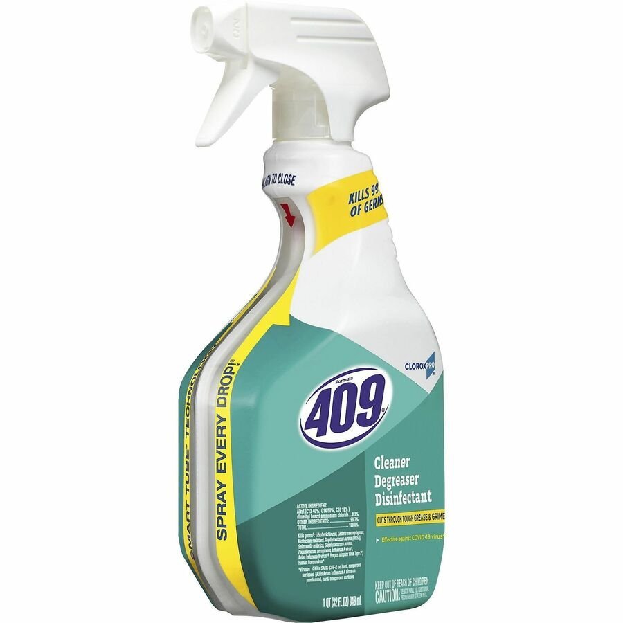 Formula 409 Cleaner Degreaser Disinfectant dissolves grease, grime and food stains while killing 99.9 percent of germs. This EPA-registered disinfectant and sanitizer is formulated to kill Salmonella, Staph, E. coli and athlete’s foot fungus on nonfood-contact surfaces. From Clorox Commercial Solutions, this degreaser/disinfectant powers through tough messes on a wide range of surfaces and is perfect for use in commercial kitchens, schools and office breakrooms.