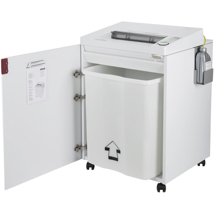 X12 Cross-Cut shredder with an LED indicator shreds up to 12 sheets of paper at a time for a cost-efficient way to destroy your sensitive files and documents in a hurry. The automatic return eliminates paper jams to let you safely clear jams and help quickly get back on track. A separate disc-cutting unit empties into its own waste container to keep your various waste materials separated. Quiet operation keeps its operating noise to a minimum to prevent distracting others in quiet environments. Automatic detection and shutdown let you quickly shred random papers in a hurry. Inspection window allows you to quickly see the current fill level in the waste container to prevent you from overfilling the 6.1 gallon bin.