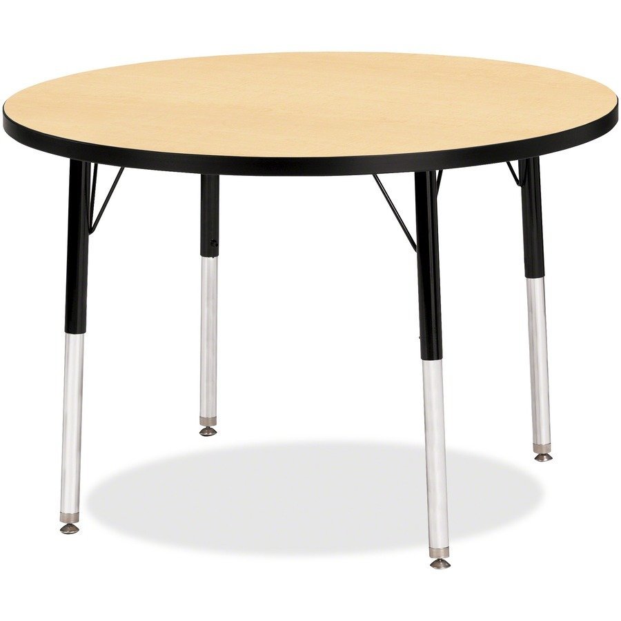 Round activity table for adults is perfectly sized to let you work comfortably. Laminate is durable and features an easy-to-clean surface. TRUEdge is permanently thermo-fused to the edges to prevent chipping. Extra-safe, dual-screw steel legs allow you to easily adjust the height of the table. Powder-coated, adjustable legs can be repositioned in 1″ increments to provide maximum comfort. Leg guides reduce squeaks, prevent snags and eliminate rusting.