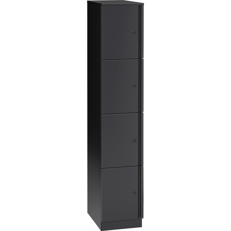 Triple-stack lockers offer a secure place for student storage. Different key-n-locks safeguard their belongings. Three rows of lockers include 12 lockers. An individual locker measures 10″ wide x 12″ deep x 20″ high. Lockers should be fastened to a wall. Kickplates prevent toe and finger pinching. Small objects can’t get underneath. Lockers are made of Baltic birch plywood for sturdy, light-duty storage.