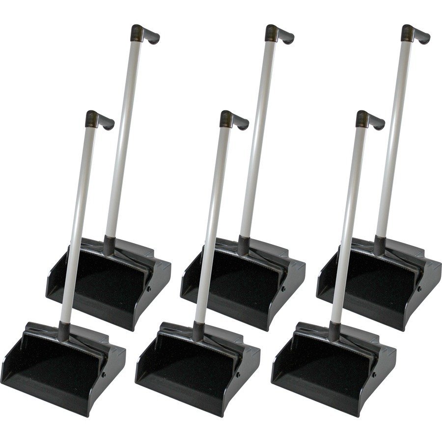 Lobby dustpan features an easy-lock, two-way handle that locks conveniently in the upright position. Innovative footrest pads won’t scratch or damage surfaces to safely clean all types of floors. Enhanced angle bottom prevents contained dirt and dust from falling out. Refined front edge makes picking up smaller items and dust easy to save you valuable time and effort. Large tray capacity picks up even more to prevent frequent emptying. Broom cleaning teeth quickly clean your broom to maximize your efficiency.