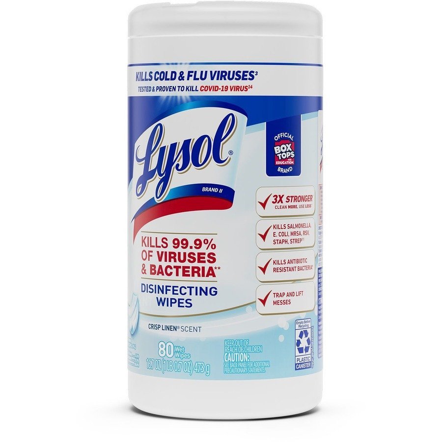 Boost customer confidence with the recognizable canister of Lysol Disinfecting Wipes that are ideal for high-visibility locations. Pre-moistened disinfecting wipes kill 99.9 percent of viruses and bacteria, including the virus that causes COVID-19, when used as directed on hard, nonporous surfaces. Hospital-type disinfection works on a variety of surfaces, including electronics. Quickly clean and disinfect high-touch, germ hot spots to help protect your customers and staff. Clean up and keep moving with packaging that’s easy to open, dispense and store.