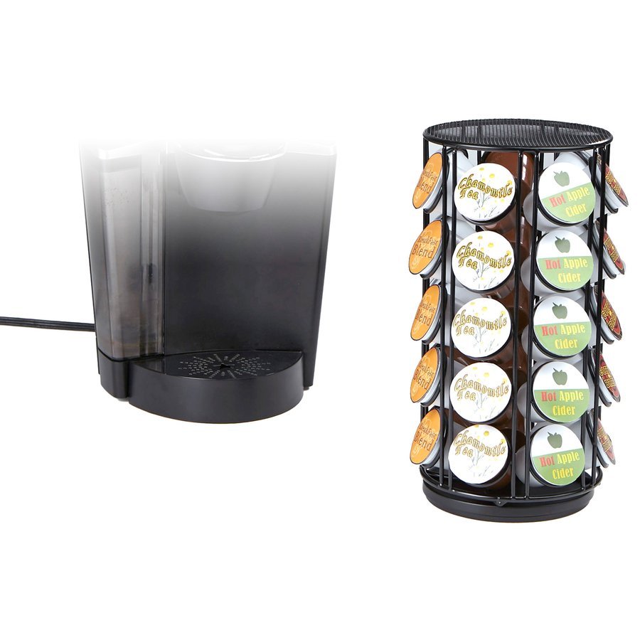 Coffee pod carousel features a handy Lazy Susan base that spins smoothly to help you quickly find and select your favorite blend. Sleek, vertical design allows space-saving use to ensure you have plenty of space for your other supplies. Powder-coat finish is stylish and durable to coordinate with most kitchens and breakrooms. Coffee pod carousel is designed to hold up to 35 single-serve pods.
