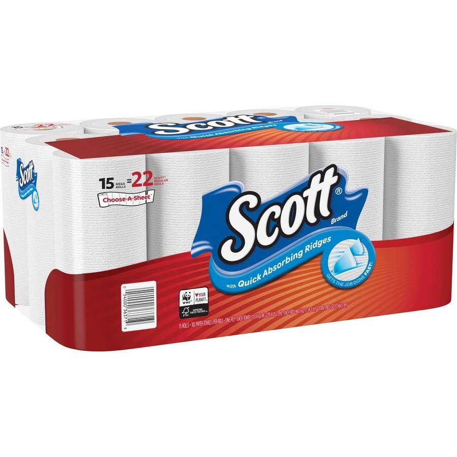 Disposable kitchen paper towels soak up spills quickly with Quick Absorbing Ridges. Scott brand delivers the quality you can rely on. Choose-a-sheet design allows you to grab exactly what you need to prevent wasteful use. Mega rolls provide more towels in every roll to prevent frequent roll changes in busy environments.